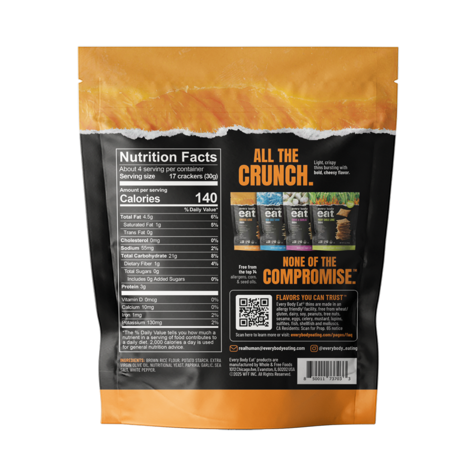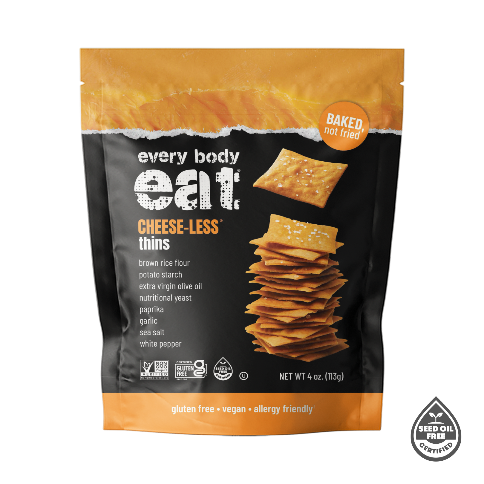 Cheese-less, flavor-full. All the cheesy flavor, but no dairy or unpronounceable ingredients for these snack thins.