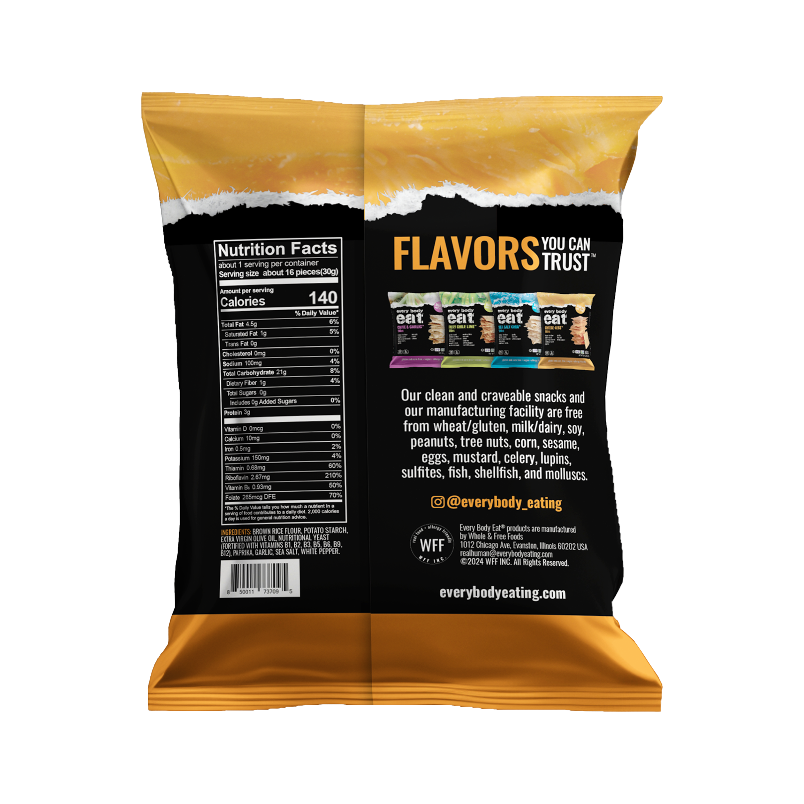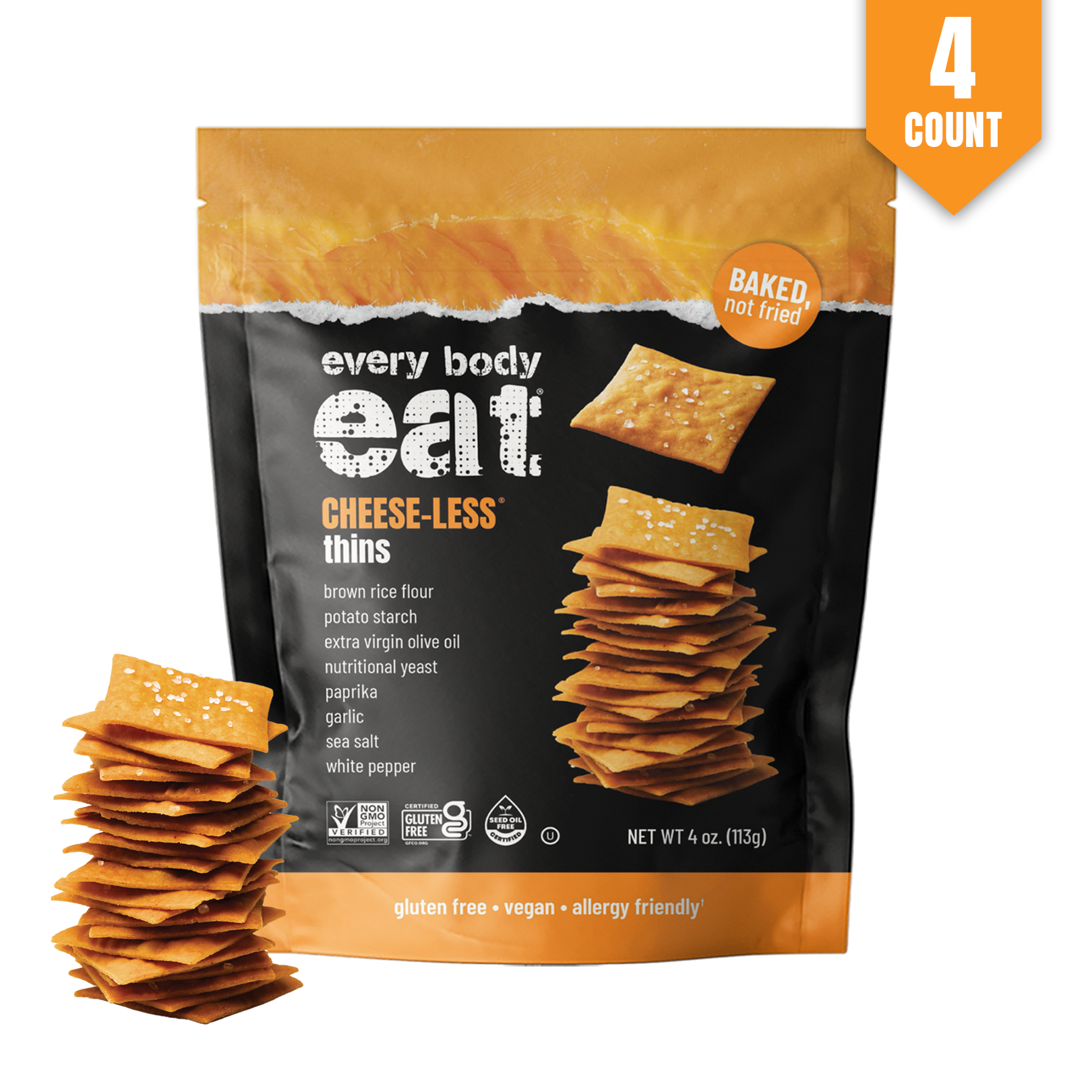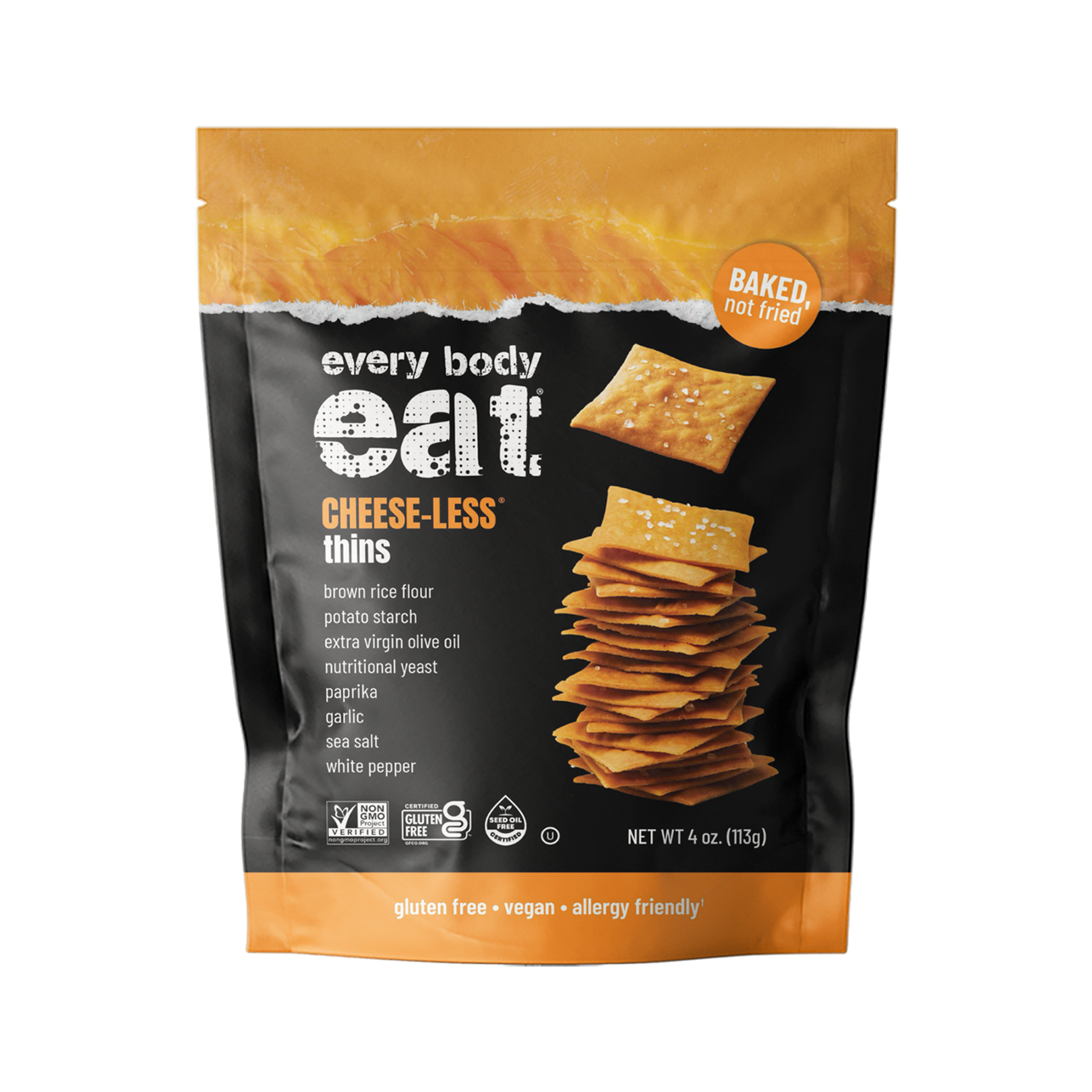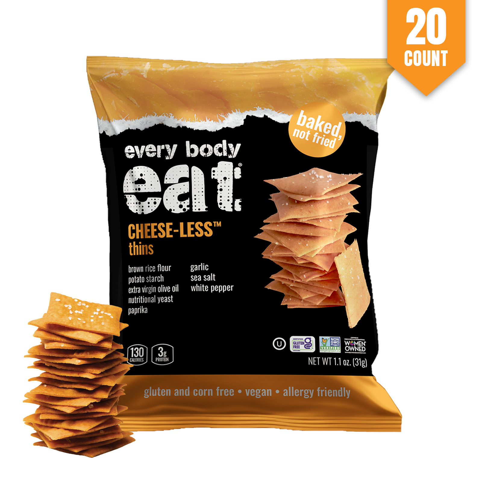 Cheese-less, flavor-full. All the cheesy flavor, but no dairy or unpronounceable ingredients for these snack thins.