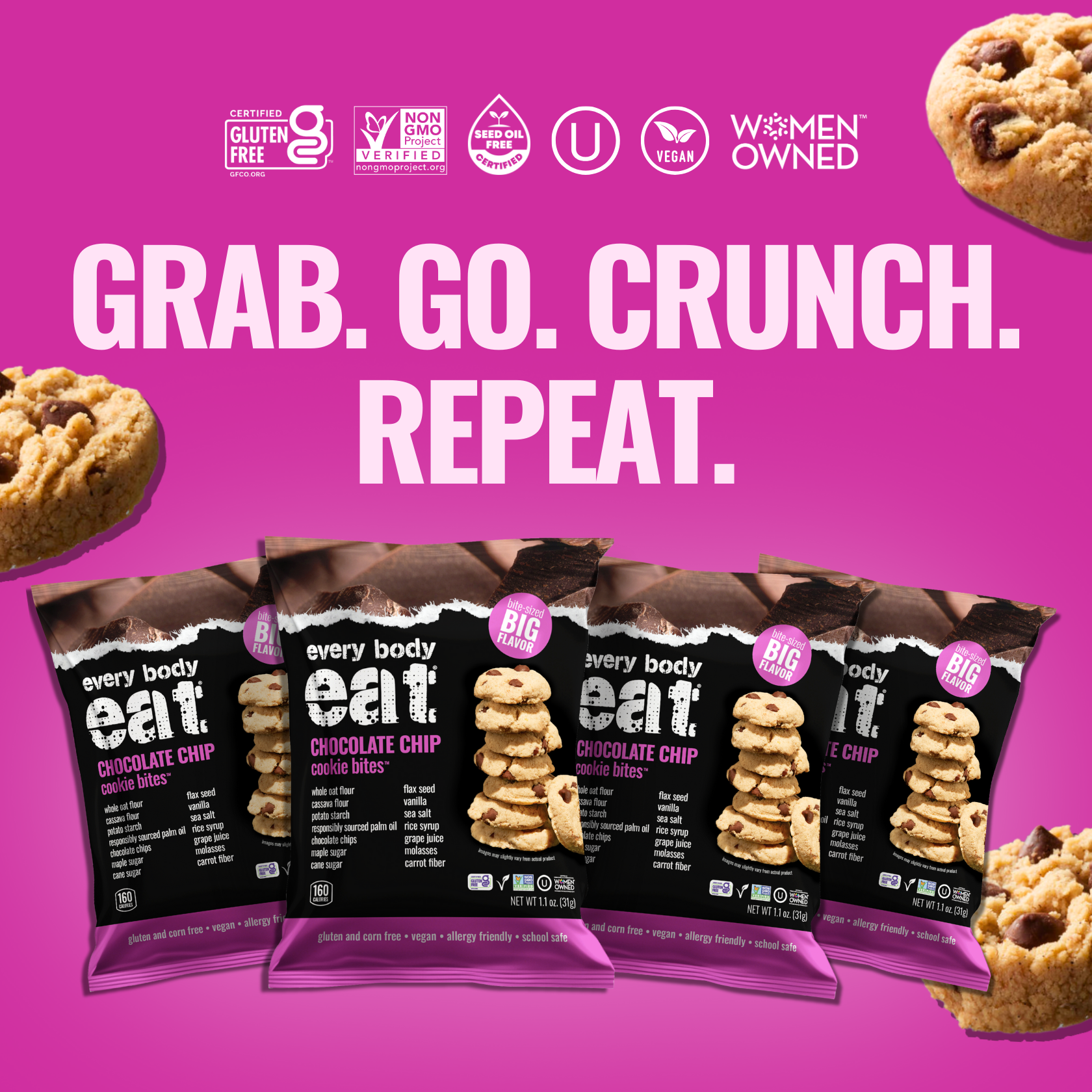 Meet the cookie that proves you can have it all—flavor, comfort, and clean ingredients—without compromise. Every Body Eat® Chocolate Chip Cookie Bites capture the nostalgic taste of a classic cookie in a perfectly poppable size.