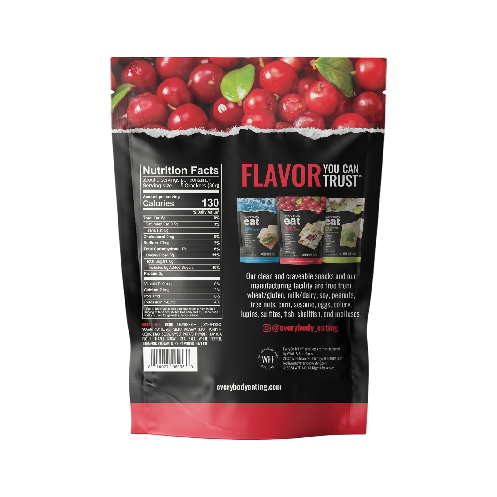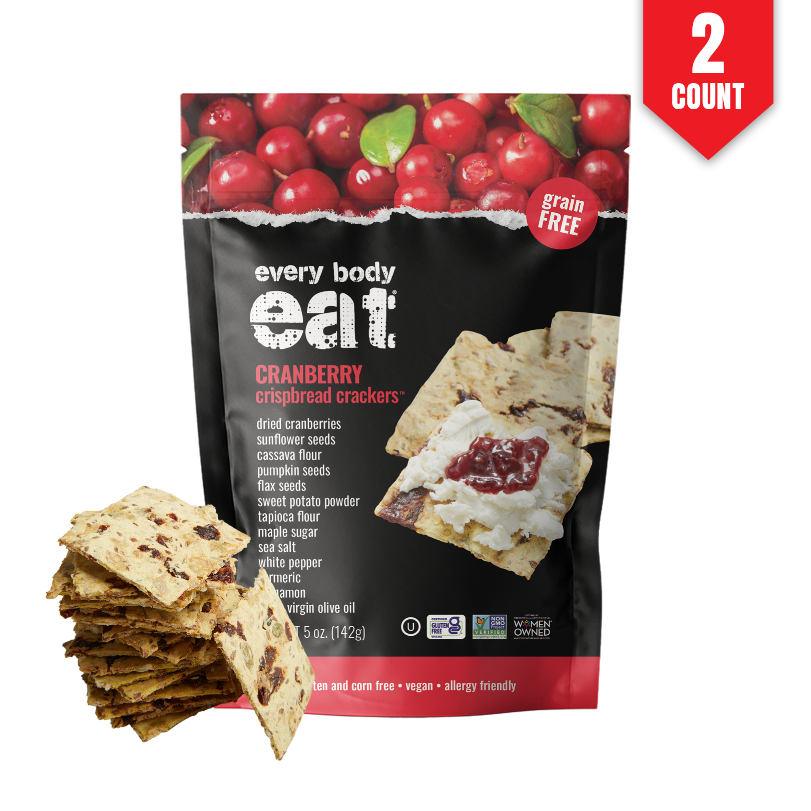 Discover the deliciously clean indulgence of Every Body Eat® Cranberry Crispbread Crackers™! These grain-free crackers master the perfect blend of sweet and salty flavors in every hearty, satisfying crunch. Made with high-quality, clean ingredients and completely free from the top 14 allergens and corn, our Cranberry Crispbread Crackers are the epitome of delicious, clean eating. Trust Every Body Eat® for a scrumptious, clean snack experience that EVERY BODY can enjoy!